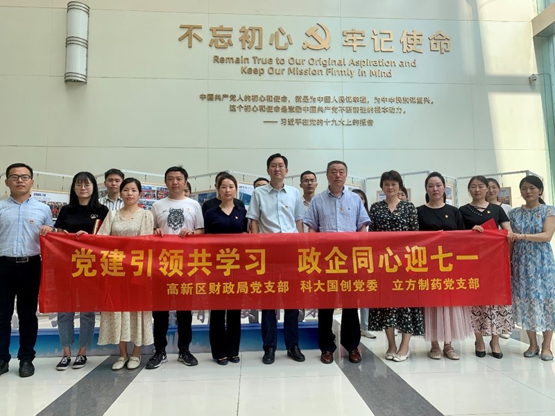 為慶祝中國共產黨成立101周年,增強黨建工作活力,密切政企聯系合作,激勵廣大黨員立足崗位爭先創優,以優異的成績迎接黨的二十大勝利召開,6月30日上午,合肥高新區財政局黨支部許永局長率支部一行來到合肥立方制藥股份有限公司,立方制藥董事長季俊虬先生、黨支部書記劉奕及其他相關領導和黨員熱情接待,雙方圍繞“黨建引領共學習 政企同心迎七一”主題開展學習交流實踐活動。